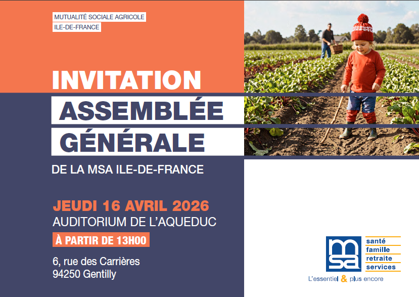 Présidée par le Président Franck Guichard, l'Assemblée générale de la Mutualité Sociale Agricole de l'Ile-de-France se réunira le 16 avril 2026.