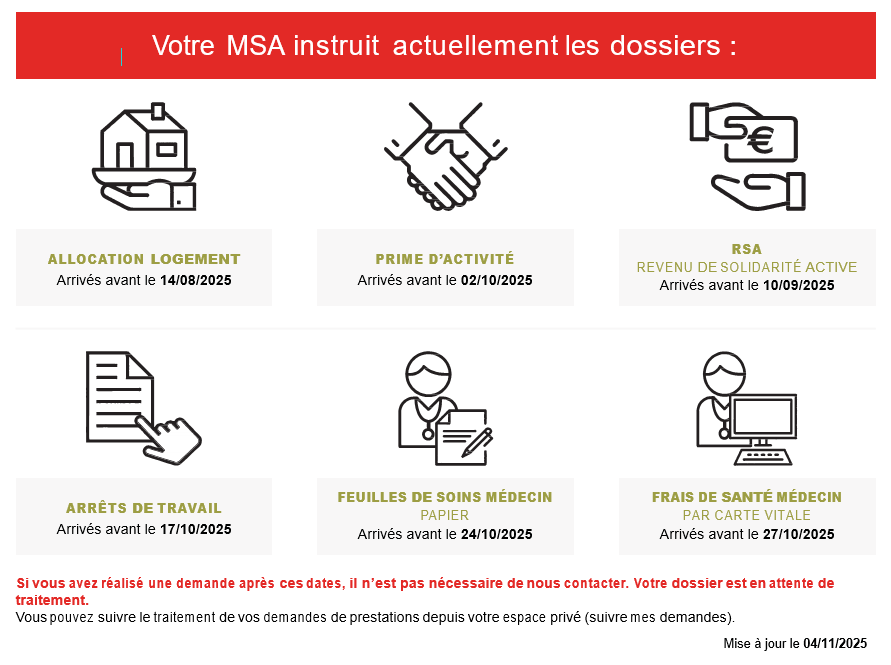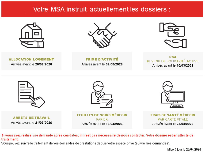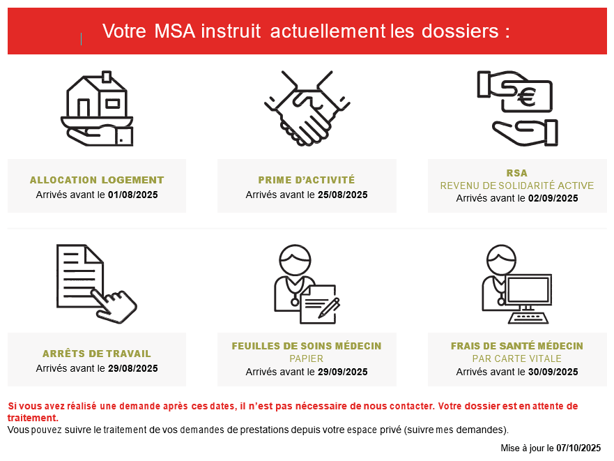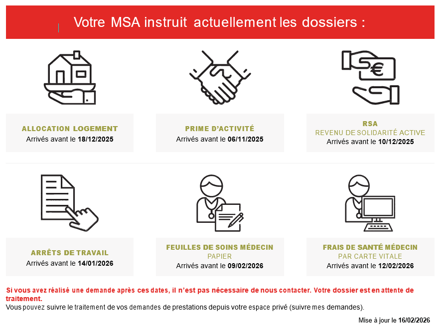 Vous nous avez transmis une demande de prestation et vous souhaitez savoir où en est son traitement ? Votre MSA met à votre disposition ses délais de traitement pour différentes prestations.